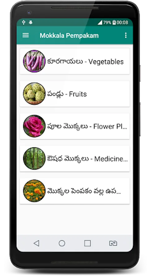 This app gives information about different types of plants forming procedure in Telugu.
