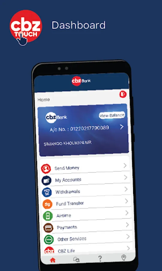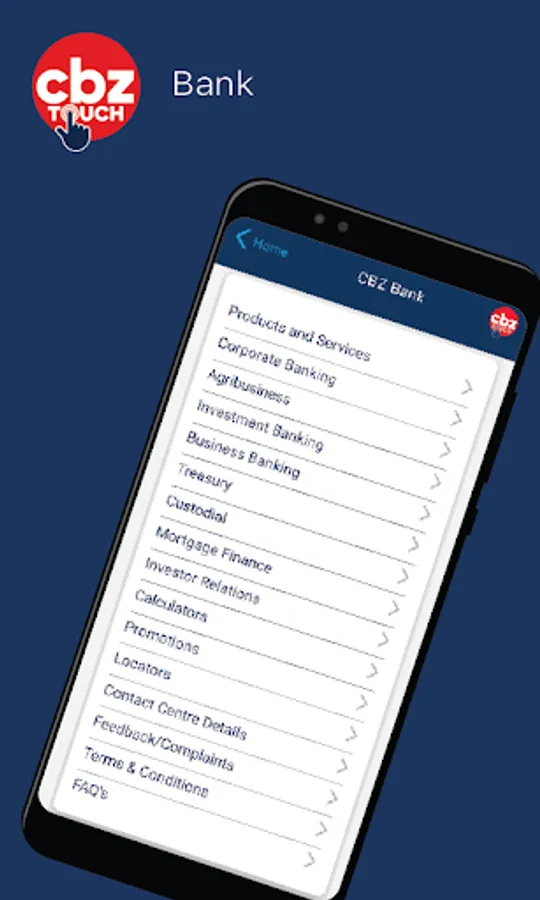 CBZ Touch is an integrated mobile app from CBZ Holdings where banking, insurance and wealth management converge and transform financial services into a lifestyle. It gives CBZ clients unprecedented control and security over their transactions by letting them decide how, where and when to transact, e.g. at home, from the farm, at church, at college, at the marketplace, from the Diaspora or on the go. With CBZ Touch you can do so much more anytime, anywhere;