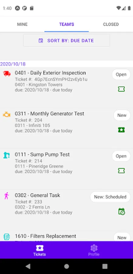 Manage your inspection and maintenance processes with your workforce via Tickets for sites, buildings, units, elevators/lifts, parking, pool, playgrounds, equipment and other features of your facilities.