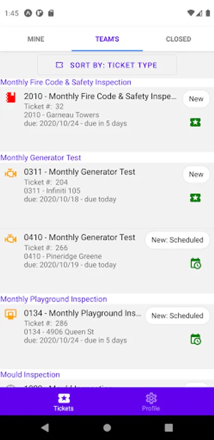 Manage your inspection and maintenance processes with your workforce via Tickets for sites, buildings, units, elevators, parking, pool, playgrounds, equipment and other features of your facilities