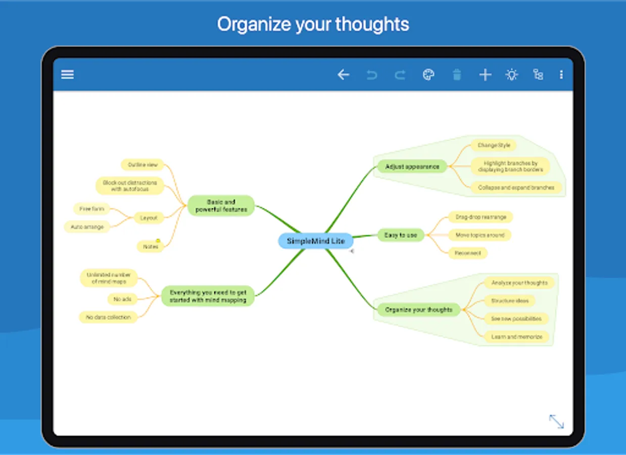 Mind mapping helps you organize your thoughts, remember things and generate new ideas. We've created a beautiful, intuitive app, so you can mind map wherever you are and whenever you want.