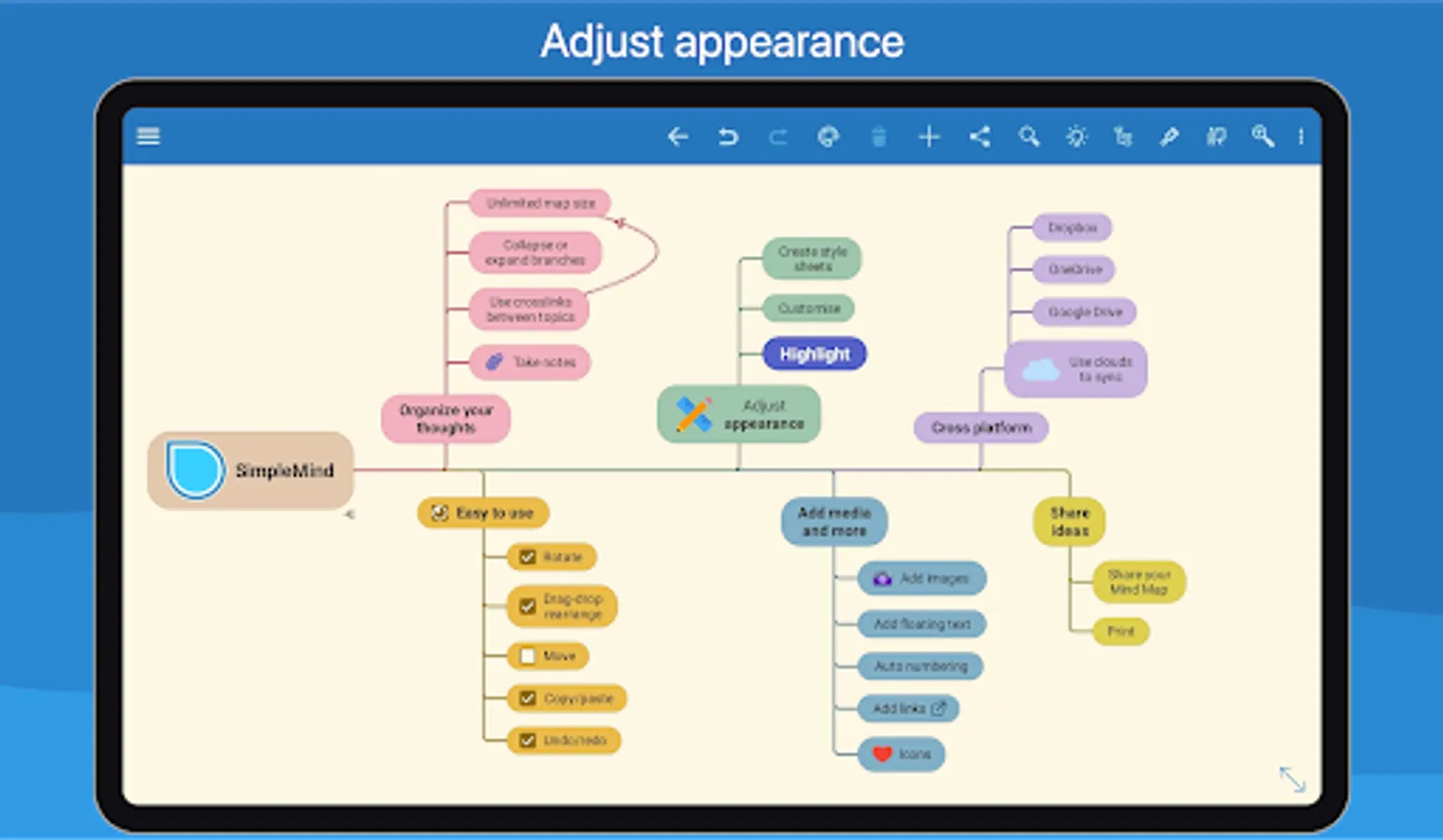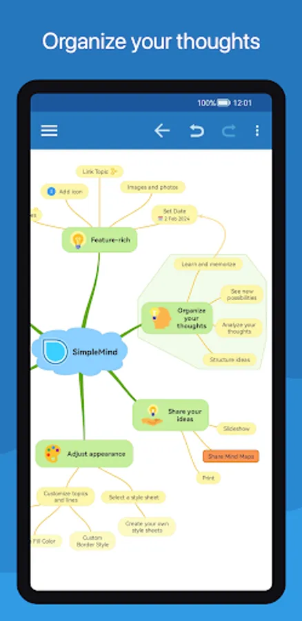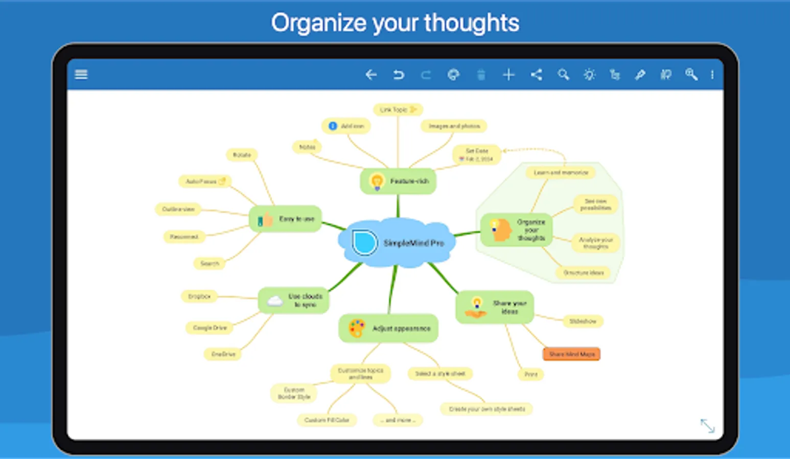 Mind mapping helps you organize your thoughts, remember information and generate new ideas. We've created a beautiful, intuitive app, so you can mind map wherever you are and whenever you want.