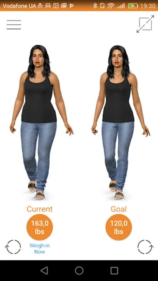 Track your daily weight change. See your future healthy self from the front, side, and back.