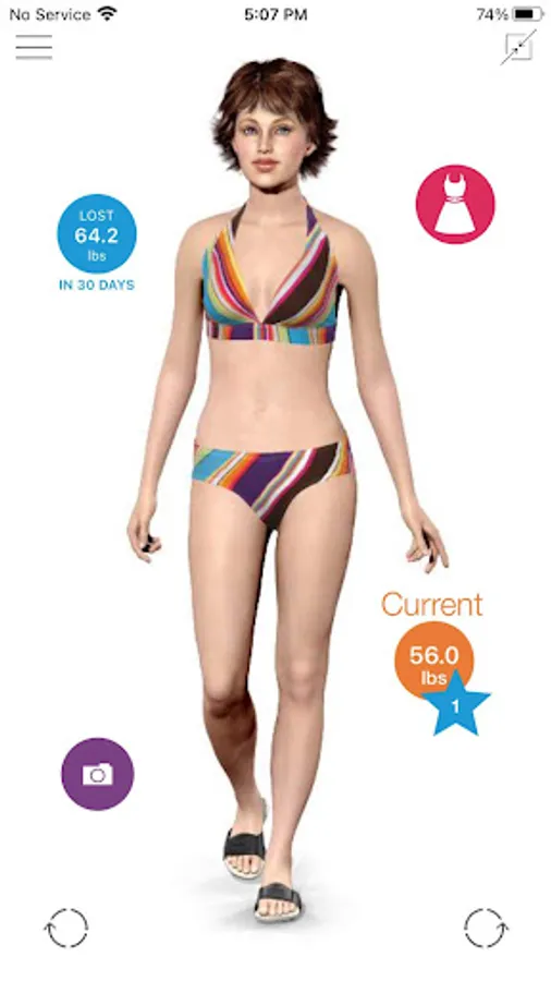 Track your daily weight change. See your future healthy self from the front, side, and back.