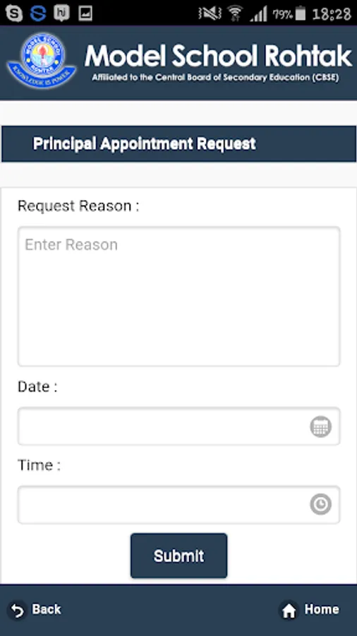 - Principal appointment request for requesting or scheduling appointment with principal.