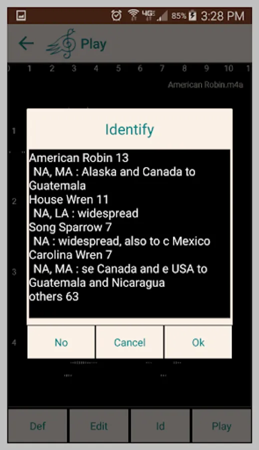 Birding Via Mic is an android app that identifies birds by their songs. Technically it doesn't differentiate between songs and calls. You can record a bird singing, play the song back, edit the recording, and (hopefully) identify the bird. You can download songs and the web screen gives you a few sites that are available. This is not a structured bird song collection. I hope it will become a collection of world class birder's favorite songs. It is a tool that can help you build a bird song collection and help you identify birds.