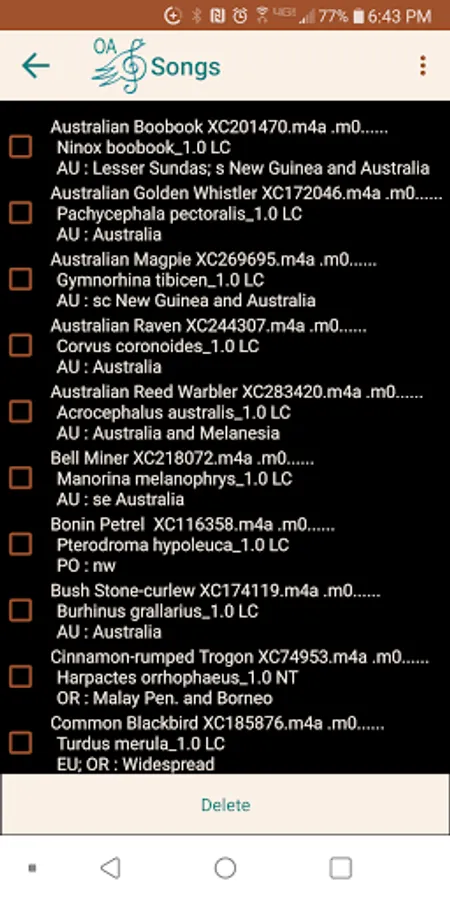 If you restart "Birding Via Mic -- Orient Australasia" the songs will be reloaded. (in case you regretted deleting some.)