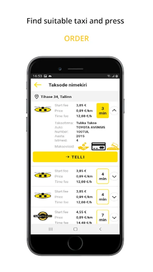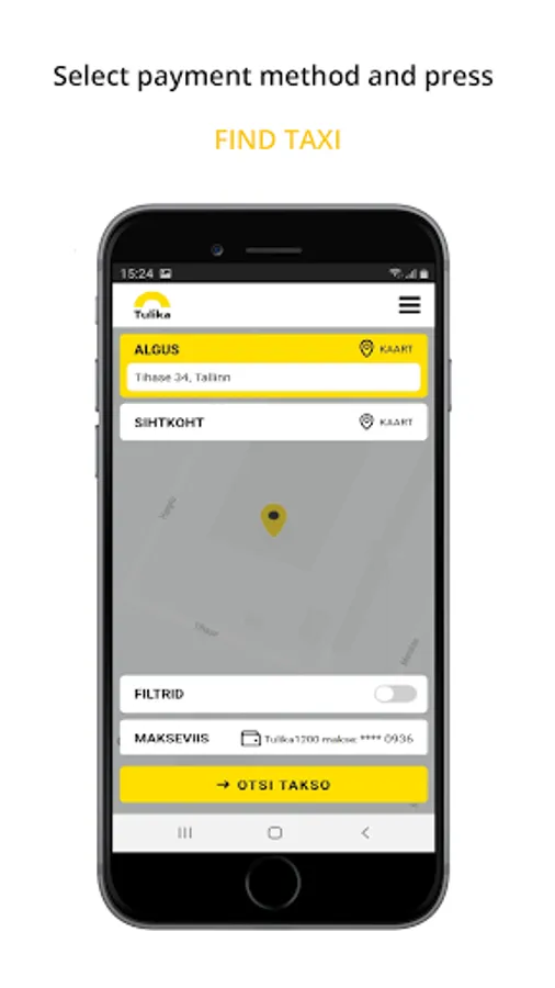 The Tulika1200 mobile application has all the conveniences that a customer expects from a modern taxi ordering application. In addition to confirming the starting point of the trip, the user can specify cash, bank card, Tulika1200 application payment or Tulika customer card as the method of payment for the trip. The customer has no obligation to enter the destination of the taxi ride and the price is calculated on the basis of the taximeter reading. Tulika Takso is a traditional taxi company and offers its customers transparent pricing - the price list can be seen by the customer in the application before ordering a taxi and the travel costs from the current taxi taximeter. Neither Tulika1200 nor Tulika Takso uses dynamic pricing or multipliers!