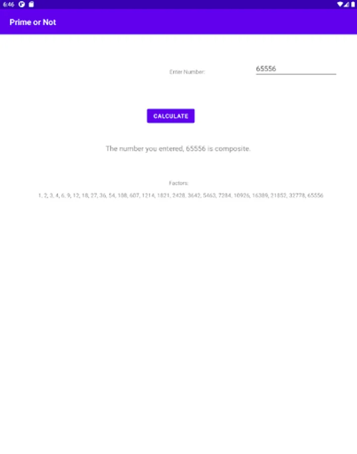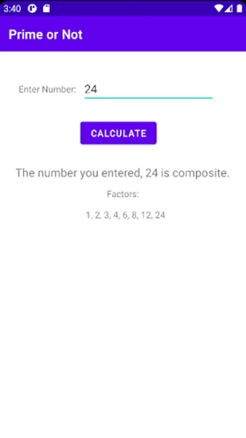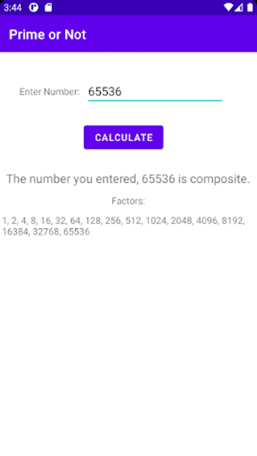 Prime or Not is a memory-efficient and simple app that finds if a number is a prime or a composite number. If it is a composite number, it will also list all of its factors.