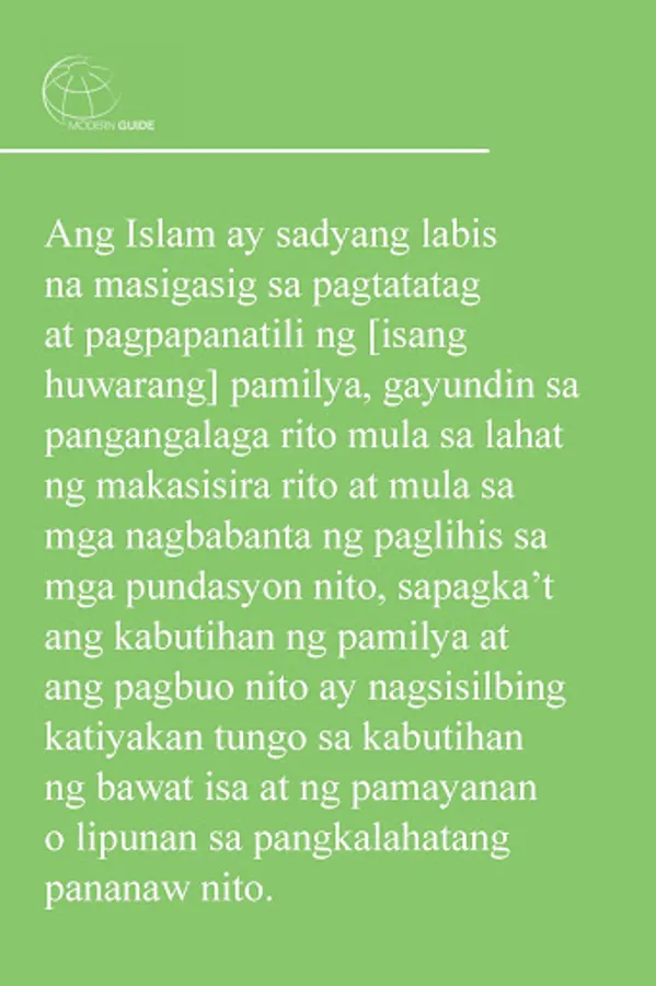 The new method [of description and explanation] is attempted to it will be given to you with full information [and knowledge and know-how] the safeguards of the family and its importance in Islam; the family was considered a pillar of Islamic society [or community]. The method [of description and explanation] will provide clarity about aspects of the implementation of the rights and limits pertaining to marriage, family relations (relationship among couples , parents and children, brothers and sisters) and relationships with other relatives and additional household family. It also explains how to focus more priority to the protection of these rights as described in the Holy Qur'an and from authentic [or approved and trusted] Sunnah [Prophet Muhammad].