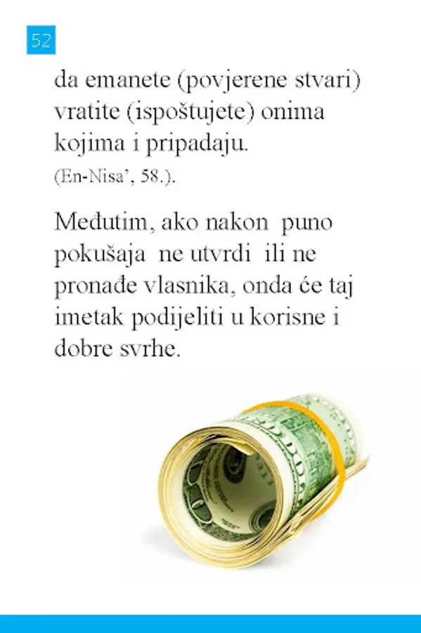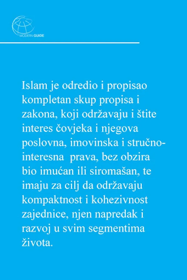 Ovaj izbornik vam nudi pojašnjenje poslovno-materijalnih odnosa u islamu, ukazuje na vrste zabranjenih ugovora, transakcija i poslova kojih se musliman treba čuvati, zatim upućuje na najznačajnije vrline kojima se musliman treba okititi u poslovno-materijalnim odnosima.