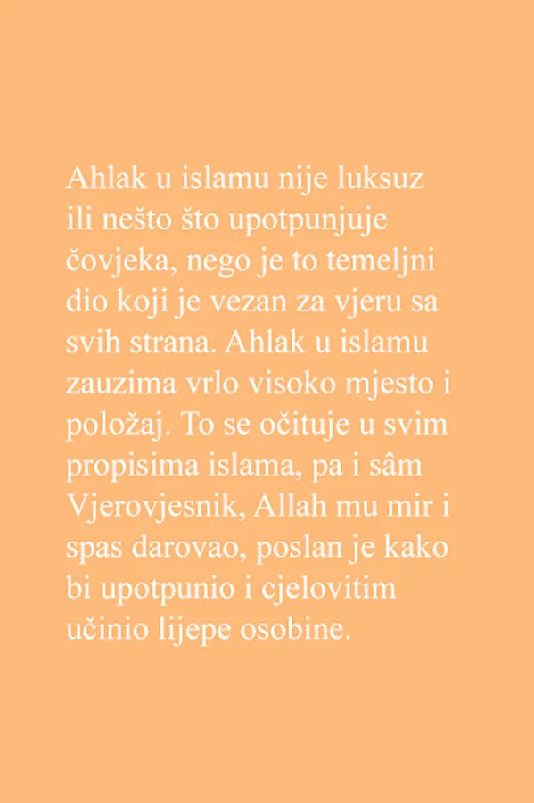 - Položaj i važnost ahlaka (lijepog ponašanja) u islamu,