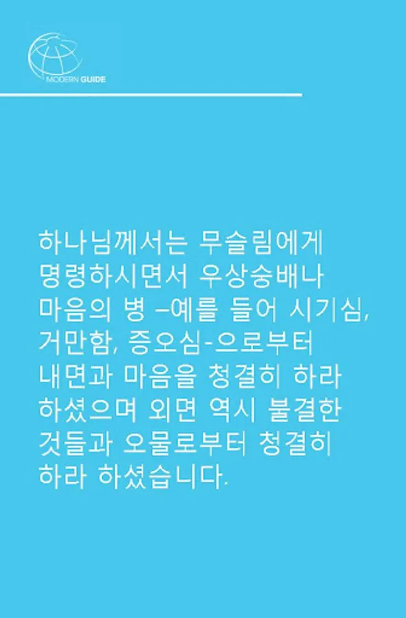 본 어플은 따하라(청결상태)의 중요성 및 따하라와 하다쓰의 뜻, 나자사로부터 청결상태를 얻는 법, 우두를 실시하는 법 등을 소개하고 있다. 또한 따하라와 관련된 여러 규정들을 쉽고 흥미로운 방법으로 풀어 쓰고 있다.
