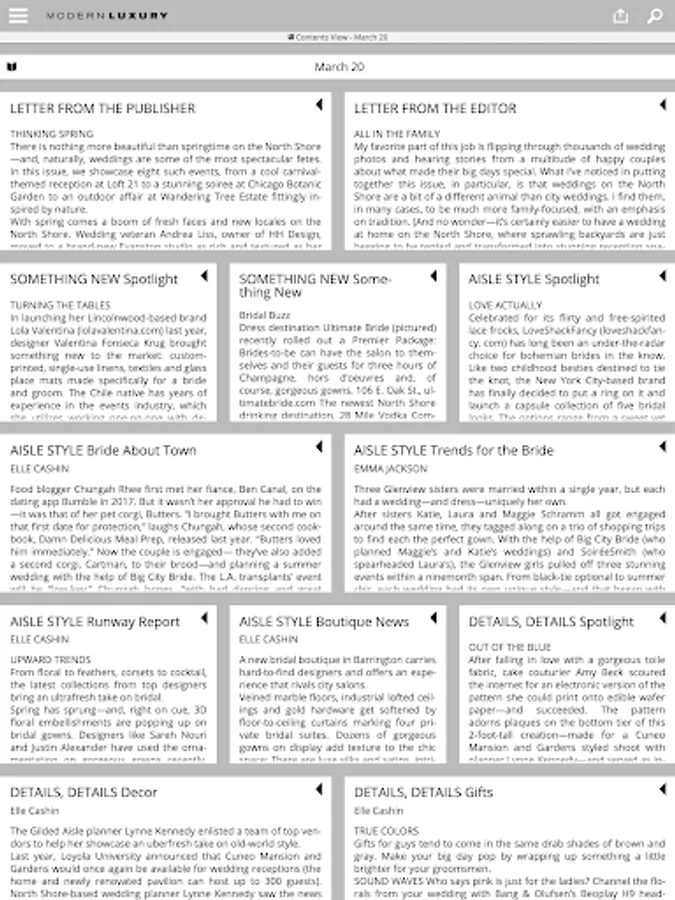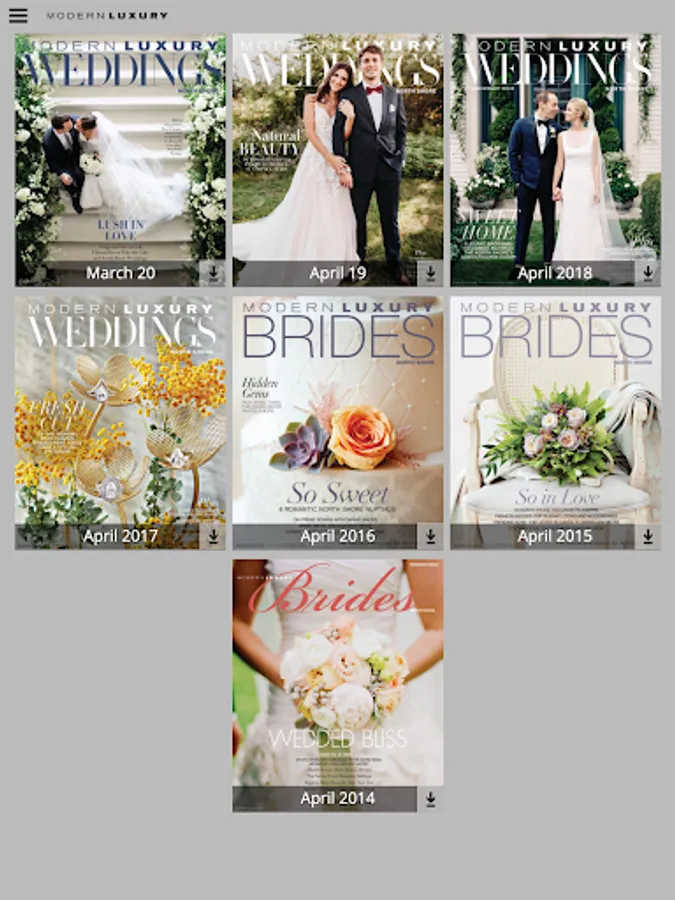 Download the ultimate luxury wedding resource for stylish and affluent couples in Chicago’s North Shore. Featuring everything from couture to luxurious wedding hotspots, coverage of the North Shore’s most extravagant weddings and a photo gallery of our favorite North Shore couples, Modern Luxury Weddings North Shore’s app is the ultimate tool for the local couples that expect the very best.