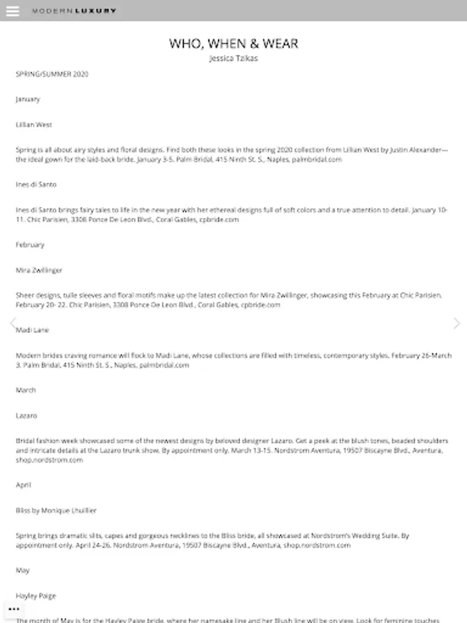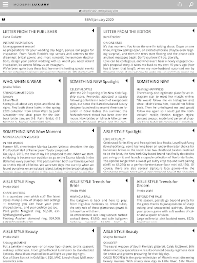 •Enjoy issues from our different Modern Luxury Weddings regions in one app.