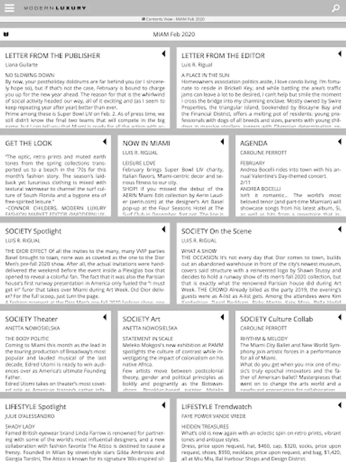 Download the absolute modern authority on the city of Miami today. Miami is the magazine for the discriminating reader and one of the first city-regionals available in app format. Be among the first to read this award winning content on your mobile device. Whether it's a revealing celebrity profile, a special feature on the chicest trends in design, cutting-edge fashion spreads or an in-depth review of Miami’s hot spots, Miami magazine consistently engages the influential and affluent interested in this great metropolis.