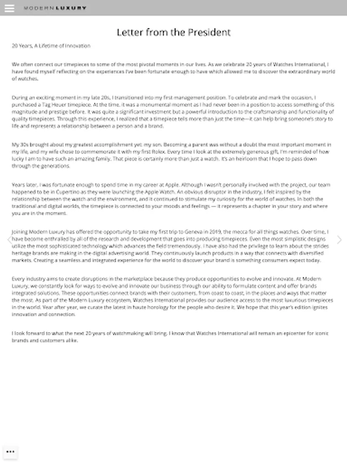 Modern Luxury is the premier luxury lifestyle publisher in the United States. With titles in the most influential major cities, Modern Luxury excels in capturing the urbane metropolitan lifestyle.