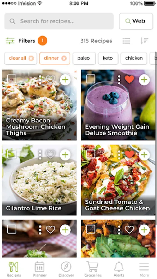 Access your complete recipe collection, searching and filtering with the powerful search tools you are familiar with from the web site. When you've found that perfect recipe, adding it to a grocery list or a meal plan is a snap.