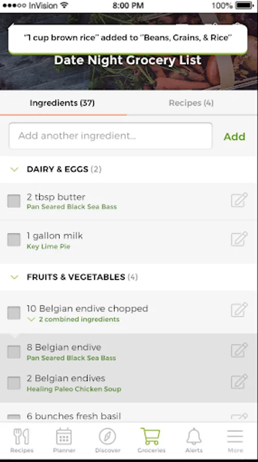 When it's time to go shopping, quickly pull up all the grocery lists you have created, or make a new one, and just tap to shop each item. You can add new ingredients or even entire recipes, quickly, right from the grocery list. Never miss a vital ingredient when shopping ever again.