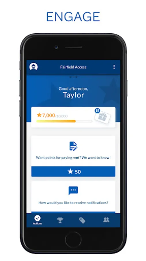 Actions include things you’re already doing like sharing about your apartment on social media, referring friends, renewing your lease, filling out surveys, sharing feedback…even paying rent online.