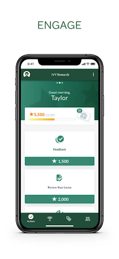 Actions include things you’re already doing like sharing about your apartment on social media, referring friends, renewing your lease, filling out surveys, sharing feedback…even paying rent online.