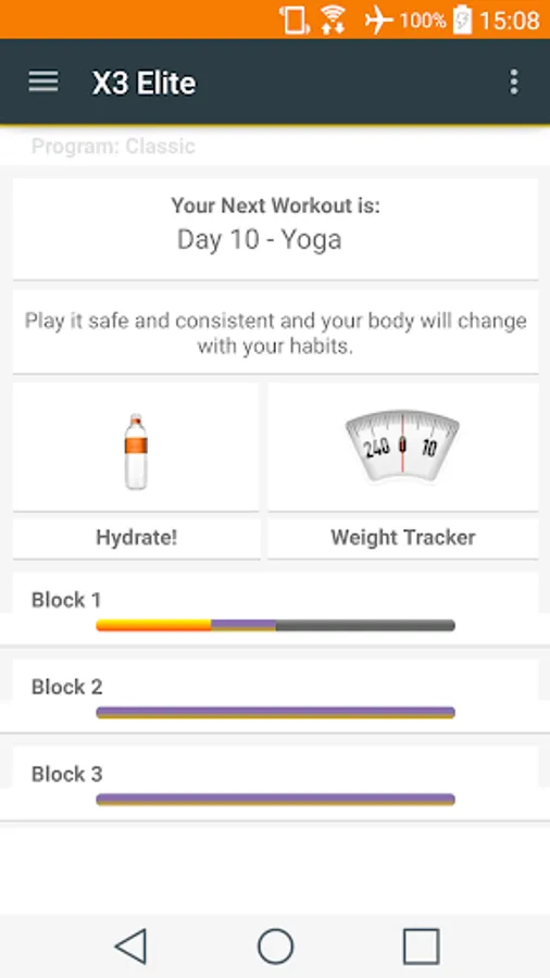✓ What's my next workout?... X3 Elite will remind you. Option to set reminder.