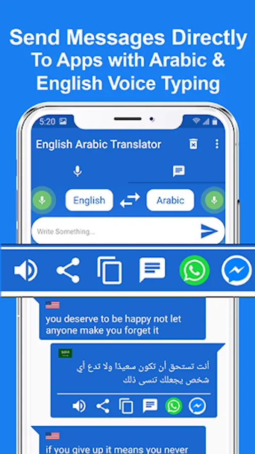 Get this English ro Arabic and Arabic ro English Translation app from the store for free. It is very simple and elegant app with which you can very easily Translate to Arabic or translate from Eng to Arabic in just seconds with both Voice or by Typing.