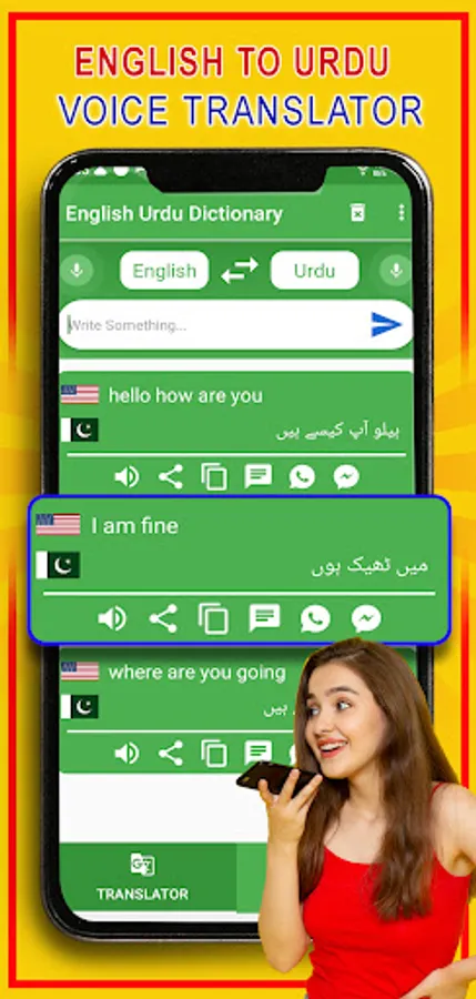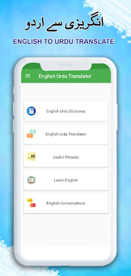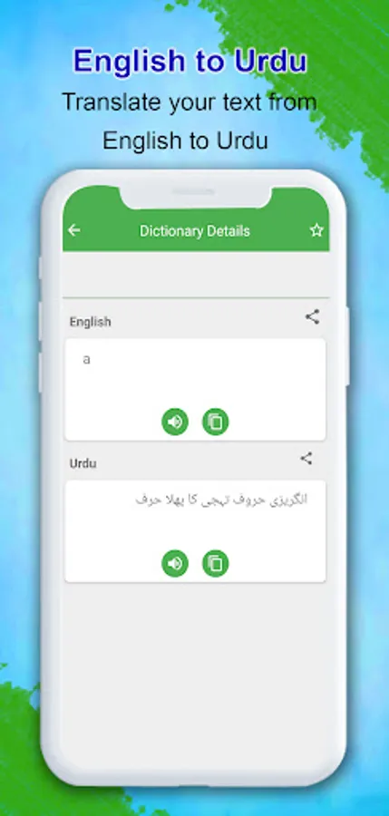 Download this Simple and Easy to use English to Urdu Translator app and start chatting in English. You can use this app as Urdu to English Dictionary as well. Type or speak any word or a sentence and this app will do wonders and translate it for you.