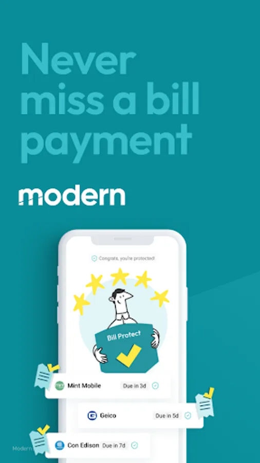 Bill Protect makes sure your bills are paid on time, even when cash is tight. Pay bills stress-free with Modern.