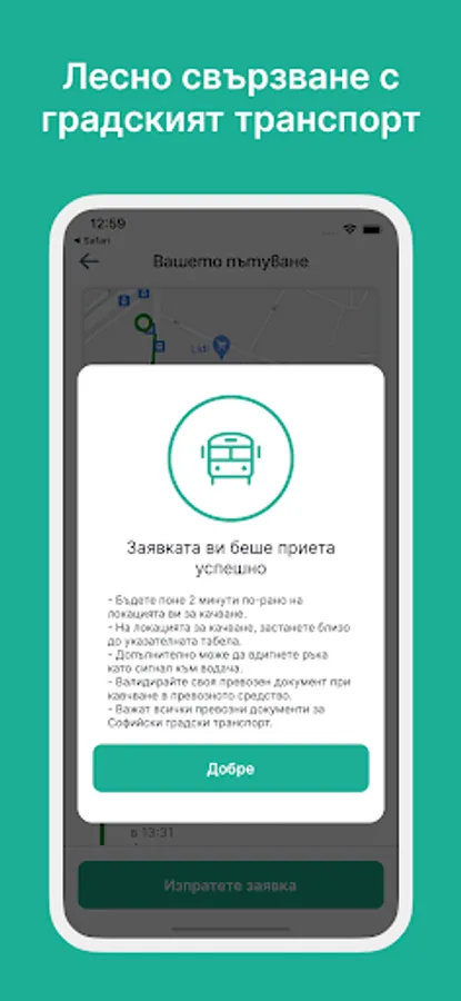Request a service and get information for the time and location of pick-up. Get to your destination fast and hassle-free with a service that adjusts to the preferences of passengers.