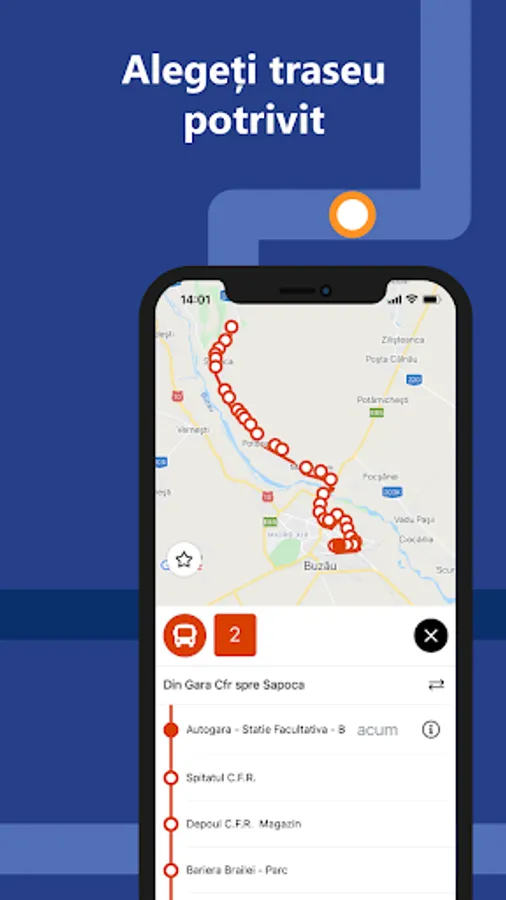 The Buzău Transport application combines travel planning, ticketing and validation for a seamless public transport experience. A simple and intuitive way to move!
