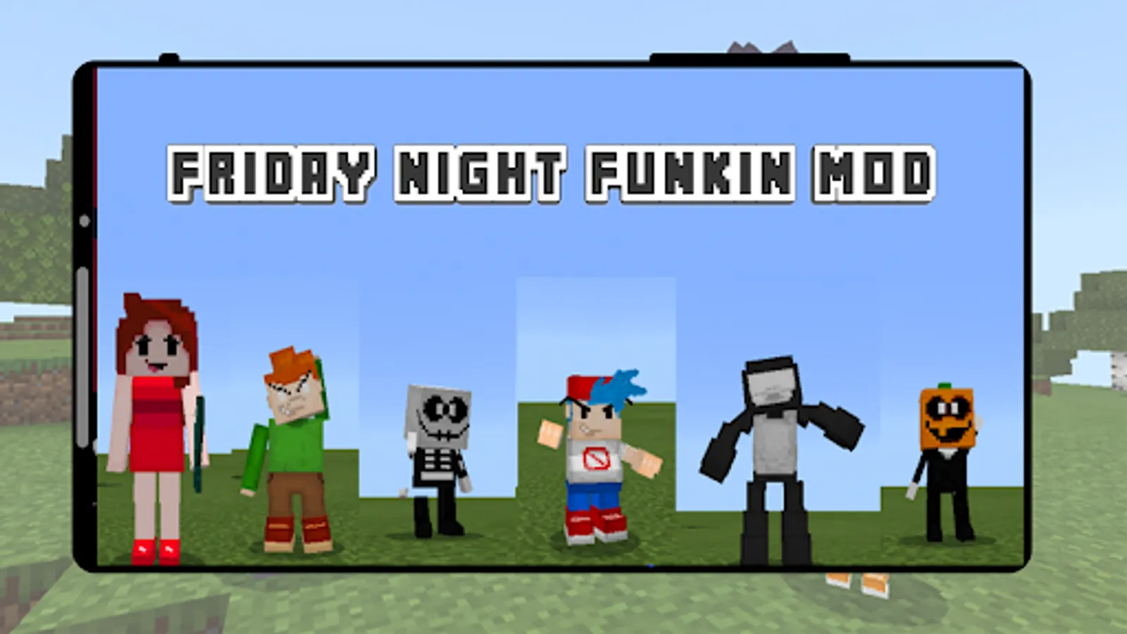 This Mod Friday Night Funkin For Minecraft PE app allowed you to easily download & install Friday Night Funkin addons for MCPE. FNF Skins MOD are available for everyone and will suit everyone. Download FNF girlfriend and Boyfriend skins, share with friends, and have fun in Friday Night Multiplayer Mode.