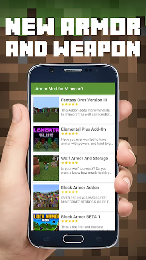 This Armor Mod for Minecraft PE bring new Armors & Weapons to your Minecraft worlds. You can easily download the Armor Mods you like and install them to Minecraft Pocket Edition in 1 click! Just look for your favorite Minecraft Armor Addons, Mods, Maps, or Texture Packs and download them!