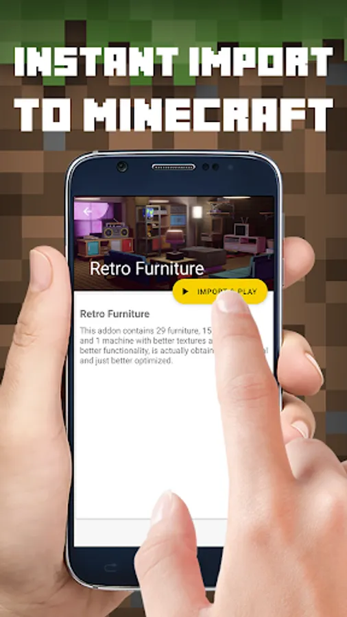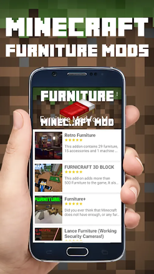 This Furniture Mod for Minecraft PE bring new Furnitures & Decorations into your Minecraft worlds. You can easily download the Furniture Mods you like and install them to Minecraft Pocket Edition in 1 click! Just look for your favorite Minecraft Furniture Addons, Mods, Maps, or Texture Packs and download them!