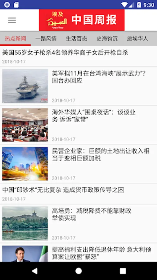 Egypt "China Weekly" is the only Middle East was founded by the Chinese, there is a formal Issues and public offerings of Chinese and Arabic bilingual newspaper, covering Chinese politics, economy, culture, sports and other aspects, as well as the Chinese version of "Journey Egyptian Chinese" features section, devoted to the business story of the Egyptian and Chinese experience. January 2016 President Xi visit to Egypt, "China Weekly" and co-produced the CNS "Friendship Special", the CCTV news channel also made a report.