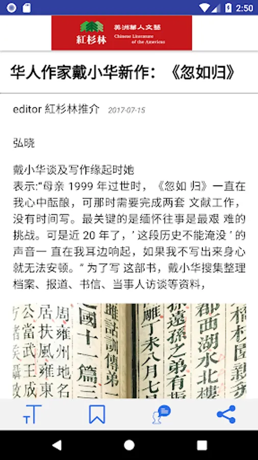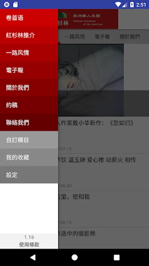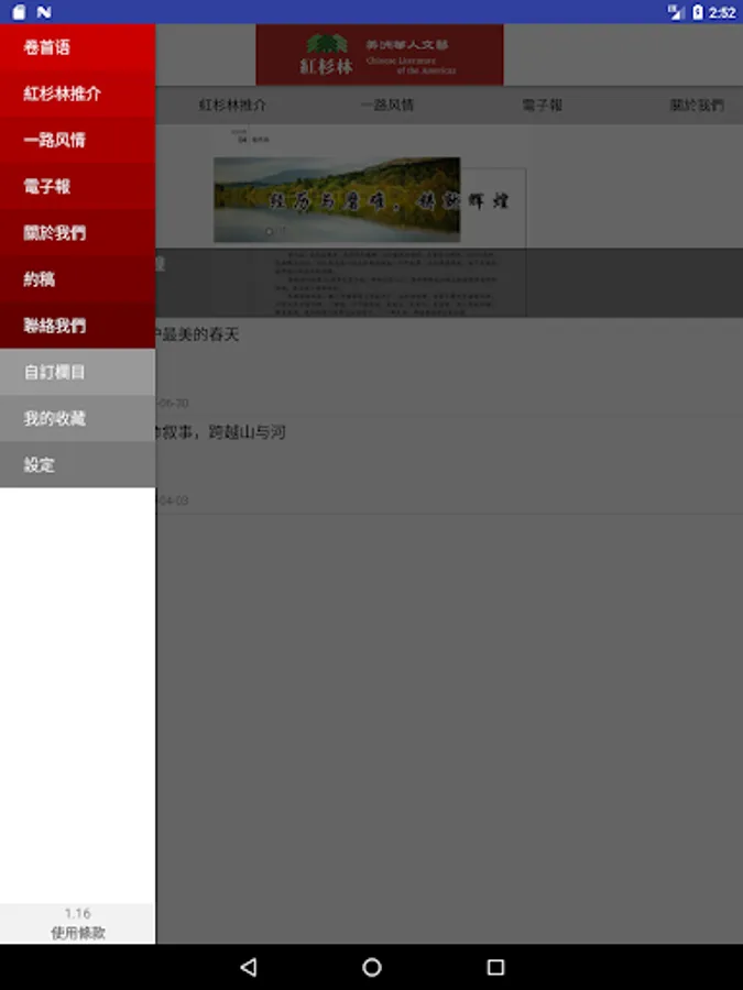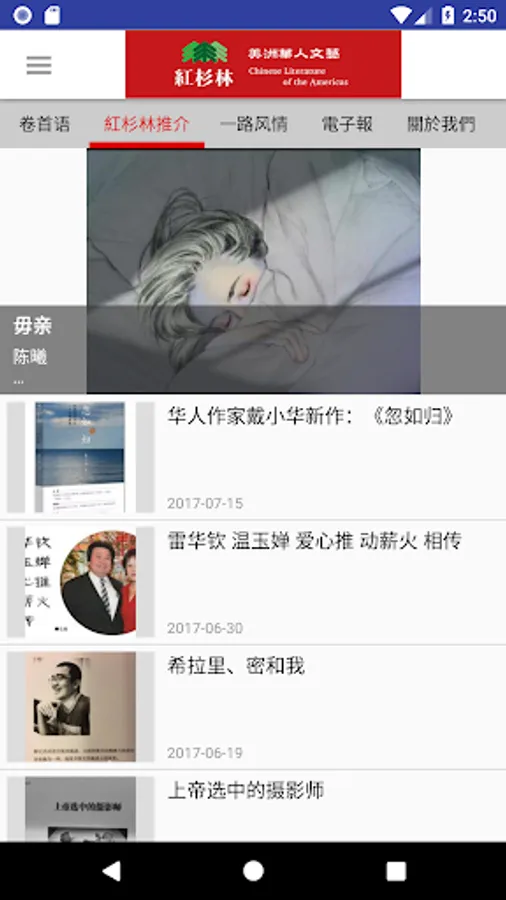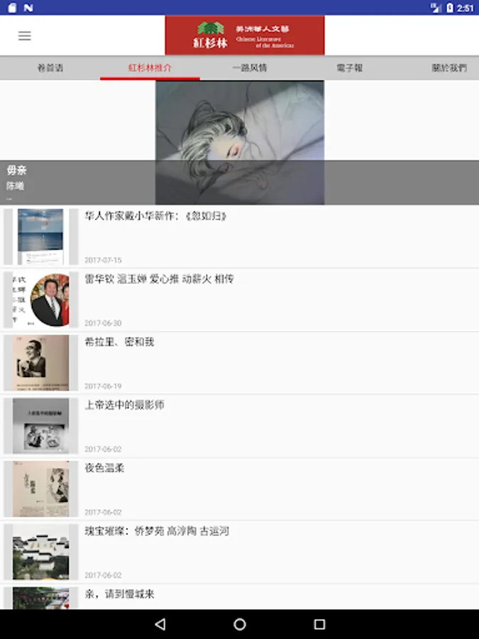A blend of human thought and the essence of art, for the purpose of carrying forward the Chinese culture, China enjoyed a high honor in North American industry, "Redwoods" magazine Chinese Literature of the Americas (ISSN ISSN 1931-6682), founded in 2006 preparations for the end of 2005, the United States Library of Congress collection. University of California at Berkeley to help in Asian American Studies Department. A strategic height and open extensive; eclectic, compatibility and storage. Published outstanding works of Chinese writers from around the world. Bilingual exchange. Access to outstanding achievements of elite and report writing literature; published academic articles; international academic forums and essay contest. Timely introduction of various types of albums to readers, such as the famous specials, Chengdu Bo Forum album, the album overseas writers Shanghai folk songs, albums writer abroad, overseas Wenxuan album, the World Chinese Writers album, album, etc. Europe and China. And adolescents in China and held in English Essay Competition.