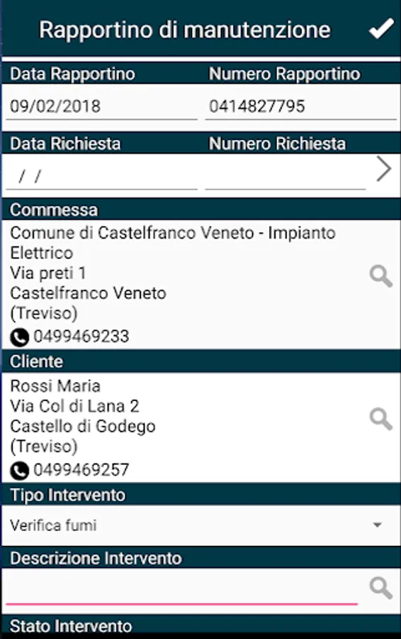 In addition Wapp allows to manage the yard rapportini and contract, requests for intervention and the management of maintenance interventions.