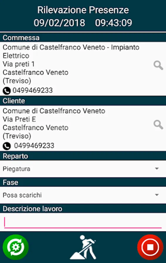 The Wapp application manages the traceability of collaborators outside the company (whether they are technical or agents) and detection of the hours of production are carried out in the same internal departments.