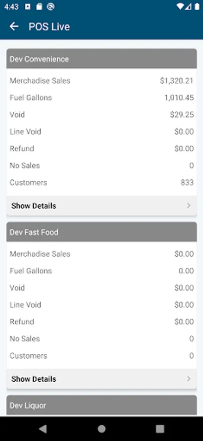 - View live transactions,Line voids,no sale, refund ,paid outs, safe drops