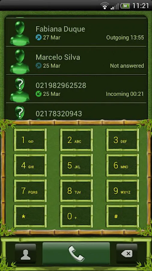 Bamboo exDialer theme with a clean design. Very nice, simple and beatifull.