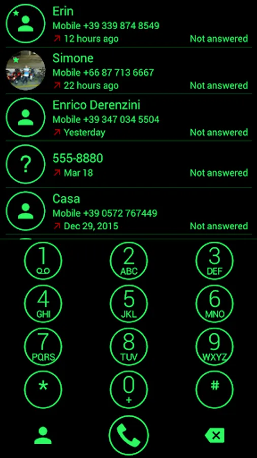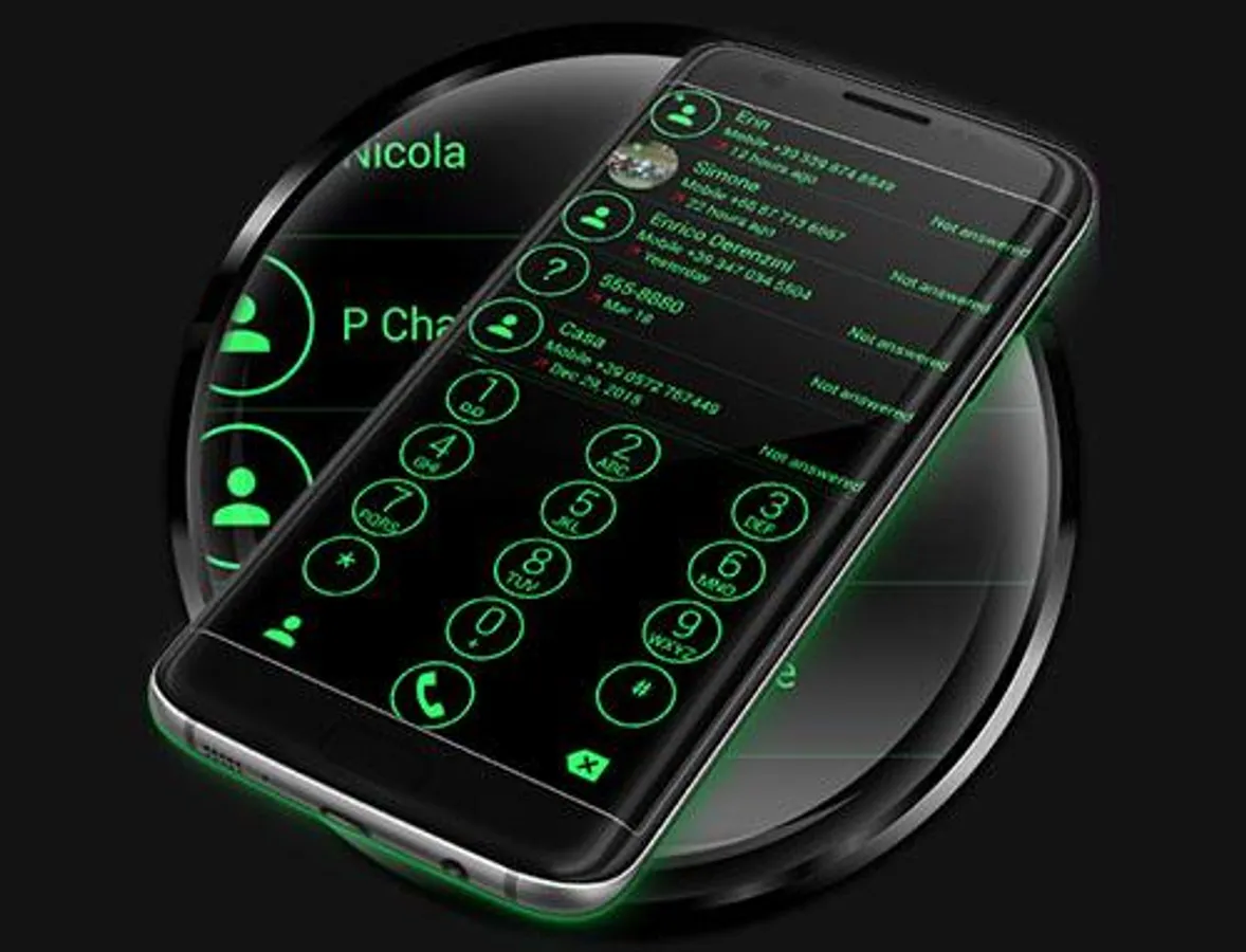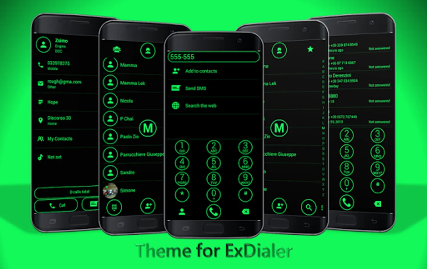 This is a black and green theme for Drupe or ExDialer - Dialer & Contacts (com.modoohut.dialer) application.
