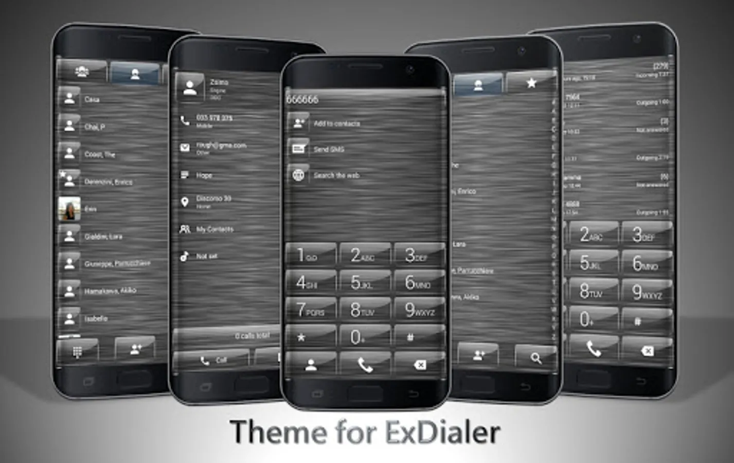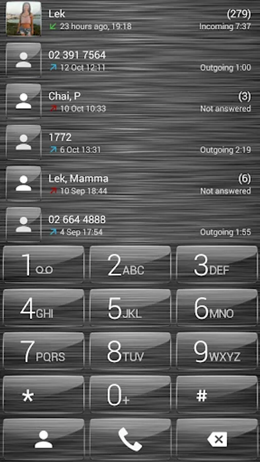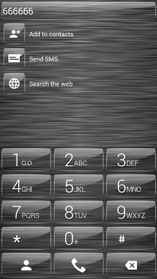 This theme will give your phone dial-pad a different look with transparent glass buttons and brushed metal background.