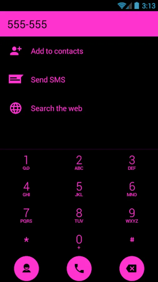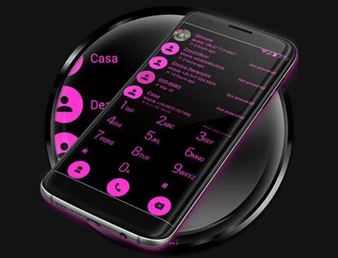 It will give you a simple and modern look with a black background and pink fuchsia borderless buttons and text.