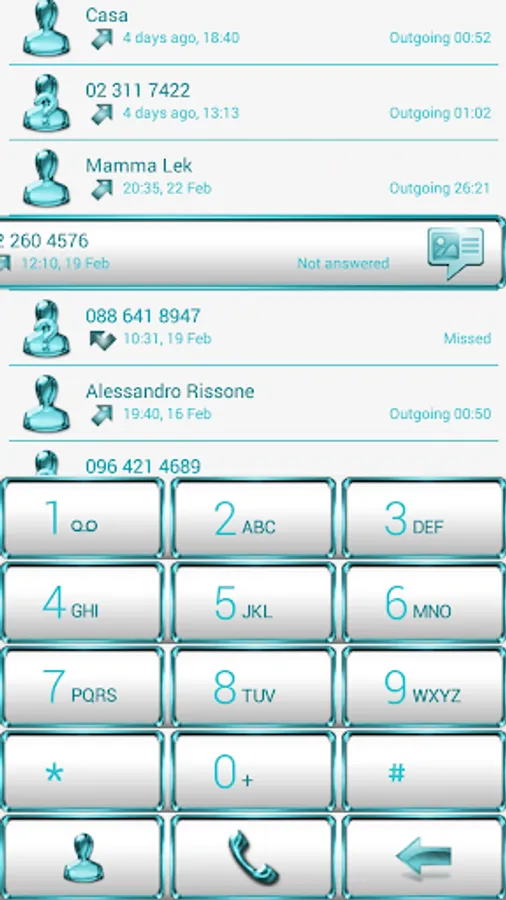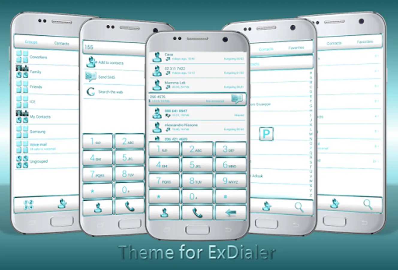 It will give your phone dial-pad a bright look in white and green with an interface made of aquamarine metal frames pastel white buttons.