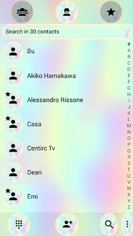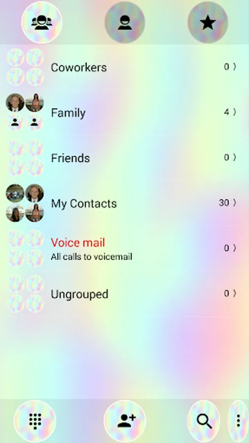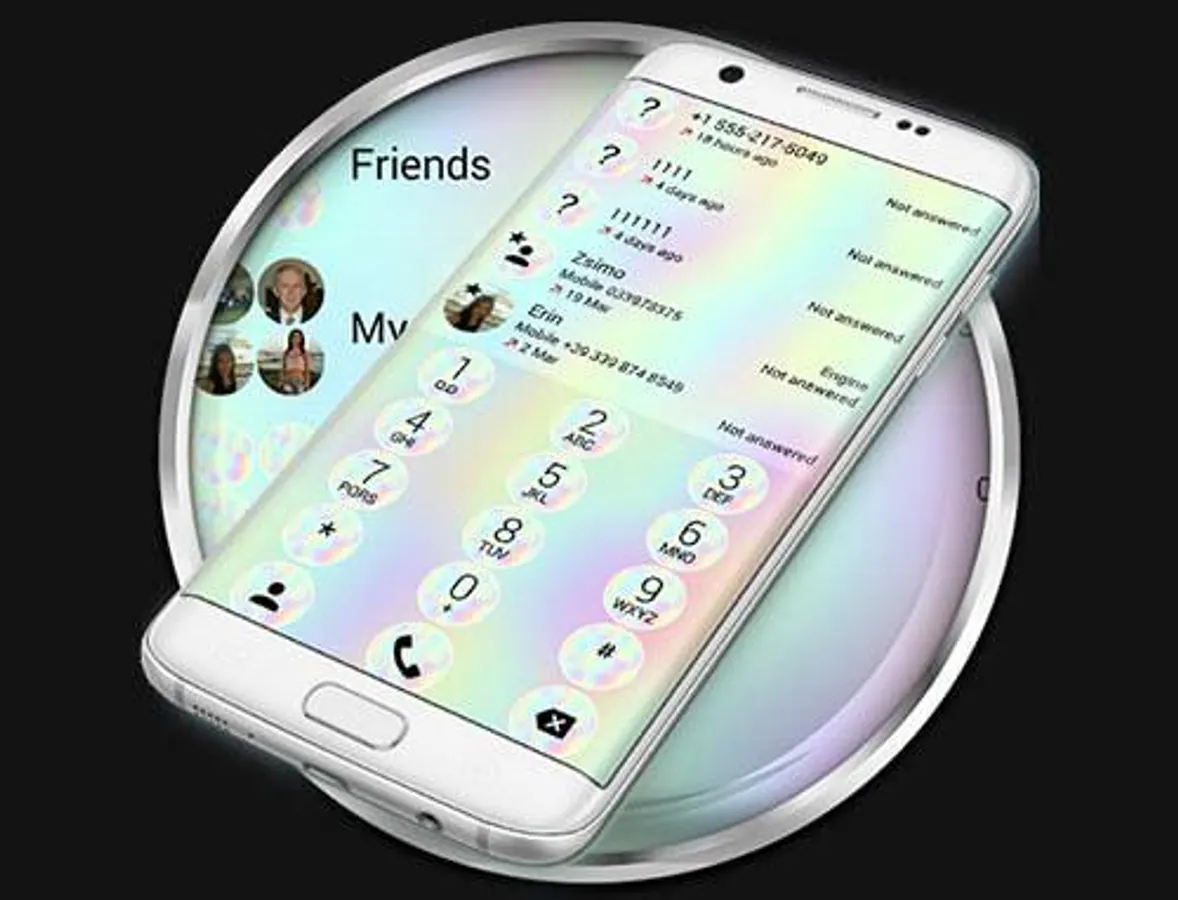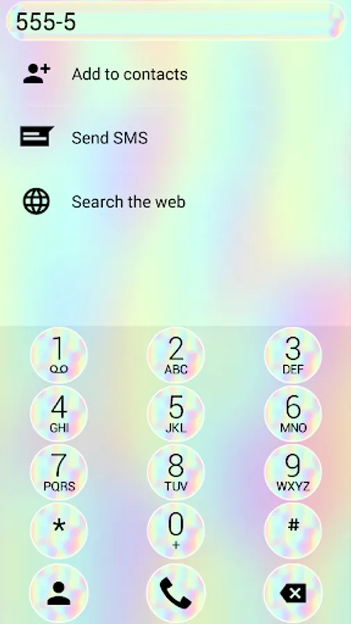 It will give your phone dial-pad a calm and peaceful look in soft holographic colors with an interface and keys decorated by multicolored abstract background.