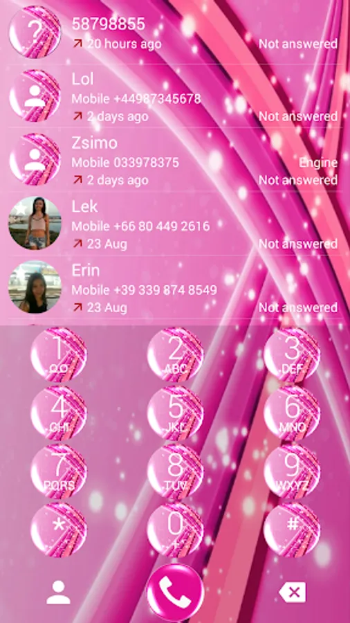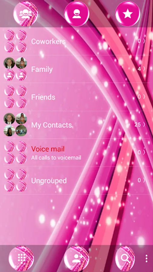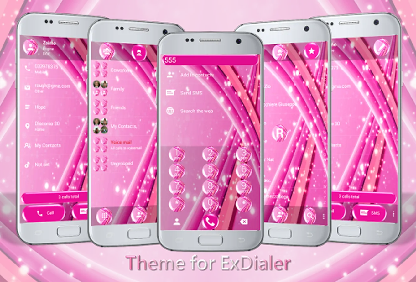 This theme will give you a cute look with a sparkling pink background and fuchsia glitter buttons shaped as glossy spheres.