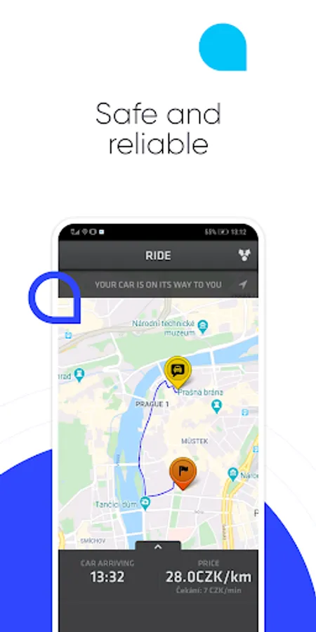 In the Modrý anděl application, you can easily order a high standard of transport in Prague and its surroundings.