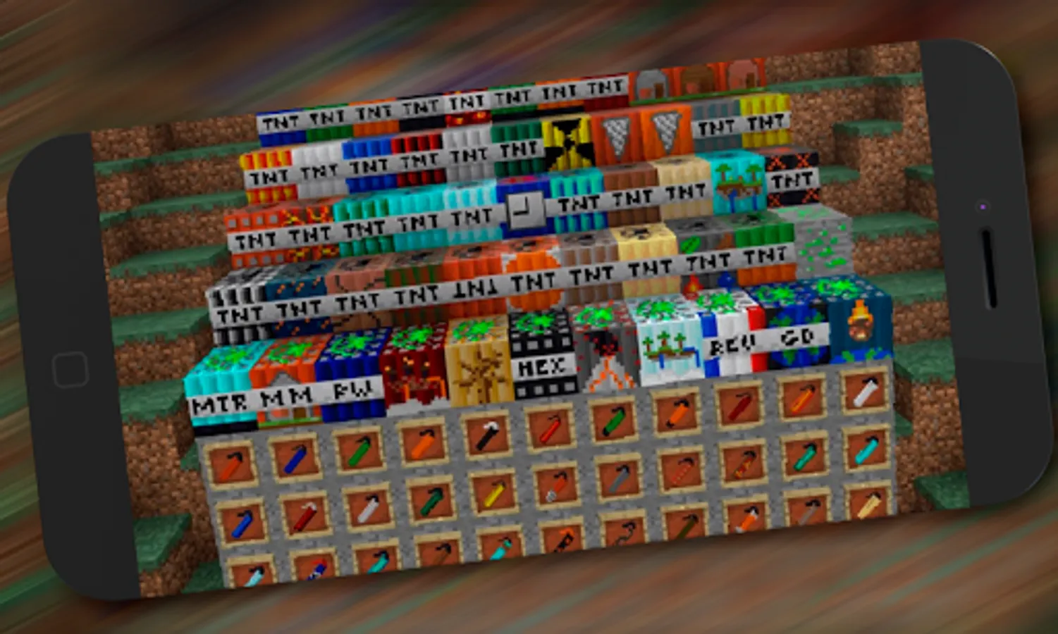 TNT Mod for Minecraft PE is the latest version of the popular add-on. Now you have more than 50 types of explosives to make powerful explosions. All this is available to users of Minecraft PE. Become the owner of the latest version right now!