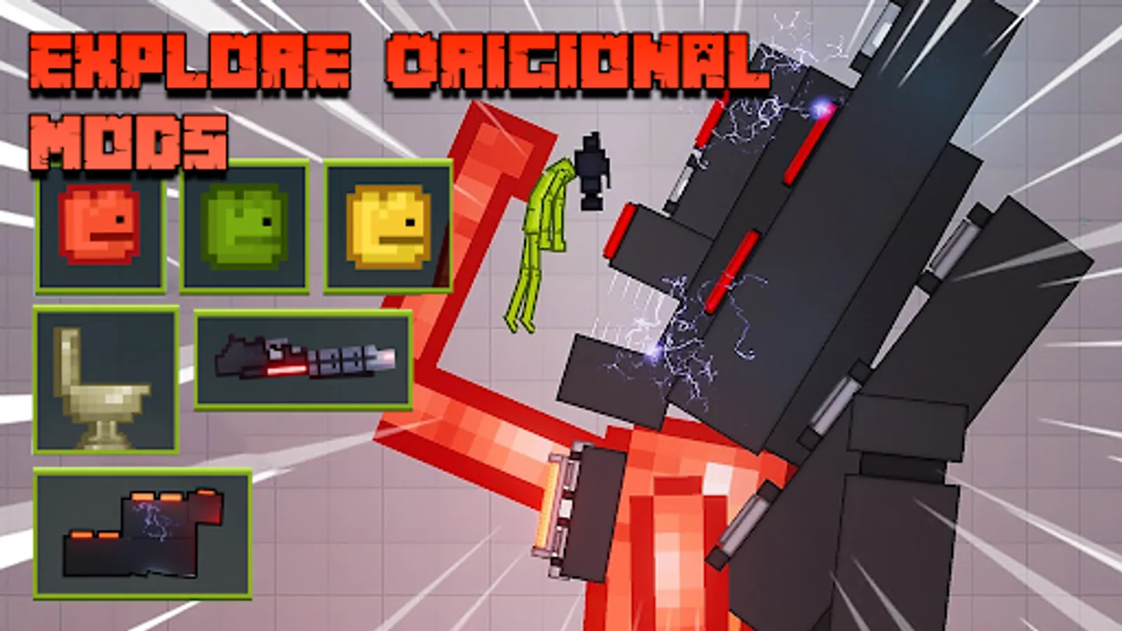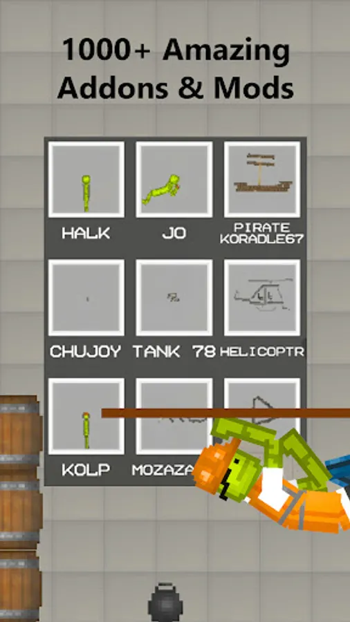 With our Mods for Melon Playground you can use your creativity to the maximum possibility. Game area give players many choices to create different character incidents between items. No matter where are you on the room you will be a part of a big experiment with car crashes, tanks and weapons, dinosaur appearing, big buildings with tons of furniture. We have collected the most interesting mods for melon playground on various topics. If you are looking for Melon Playground Mods that challenging and fun you deffinitely try our app !