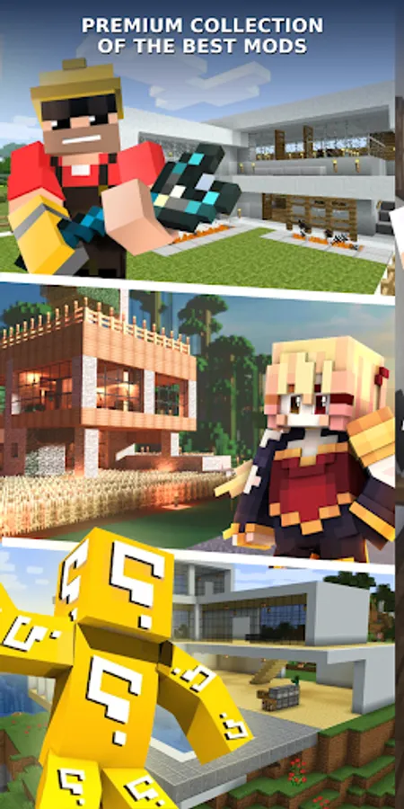 Mods Skins Maps for Minecraft is an application that contains the most popular mods, skins, maps, seeds, and other add-ons for different themes. You can download and install any addon you like with just one click.